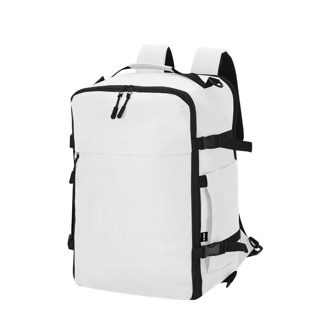 Mochila multifunción fabricada en poliéster 600D RPET. Cuenta con una excelente transpirabilidad en la zona trasera y en la cinta para los hombros, facilitando la disipación del calor gracias a sus cintas y respaldo acolchados. Las cintas anchas están diseñadas para aliviar la presión en los hombros, permitiendo llevar la mochila cómodamente durante largos periodos.